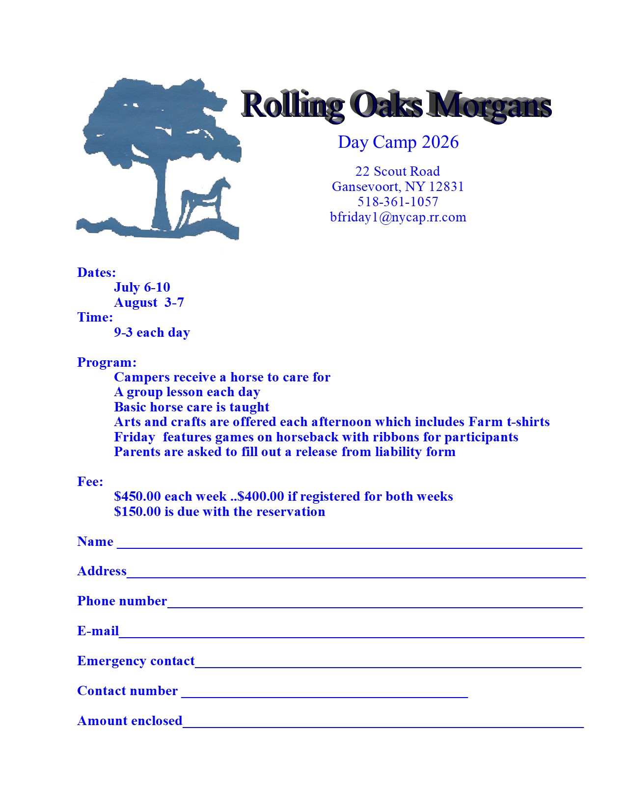 August 3-7 (Monday-Friday 9am-3pm) Registration Form